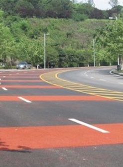 彩色薄層環(huán)氧抗滑層路面鋪筑于隧道、彎道、下坡路段、高速公路收費(fèi)站等減速路段、事故多發(fā)路段,能夠起到很好的警示作用和美化環(huán)境的作用,具有較好的經(jīng)濟(jì)效益和良好的社會(huì)效益。